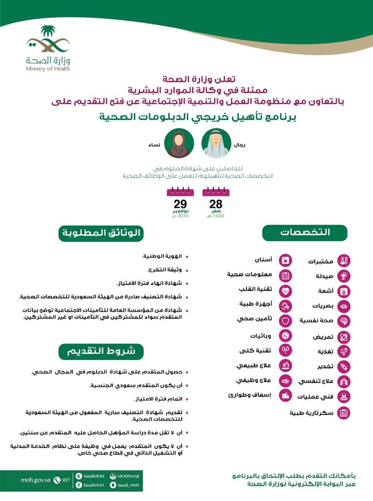 و ز ا ر ة ا لـ صـ حـ ة السعودية Sur Twitter تدشين بوابة توطين القطاع الصحي وفتح التقديم على برنامج تأهيل خريجي الدبلومات الصحيه Https T Co Wfv6xqvfrs